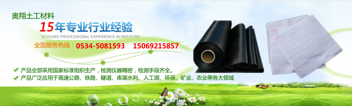 德州奧翔土工材料有限公司主要產(chǎn)品有eva防水板、hdpe防水板、長(短)絲無紡布、土工膜、復(fù)合土工膜、、隧道防水板、垃圾填埋場防水板、GCL鈉基膨潤土防水毯、排水網(wǎng)、排水板、土工格柵、土工格室、三維固土網(wǎng)墊、復(fù)合防水板、塑料盲溝等土工合成材料..