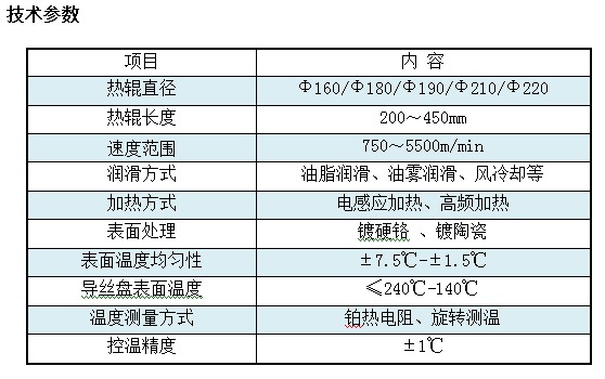 熱輥主要特點(diǎn) 1. 滌綸、錦綸絲熱輥利用電感應(yīng)加熱,熱管均溫或分段控溫技術(shù),使熱輥工作區(qū)表面溫度均勻。能滿足不同的工業(yè)絲、民用絲FDY紡絲工藝的要求 2. 丙綸絲熱輥利用電感應(yīng)加熱或高頻加熱技術(shù),使熱輥工作區(qū)表面溫度升溫迅速。該輥結(jié)構(gòu)簡單,成本較低,運(yùn)行平穩(wěn)可靠,是丙綸FDY絲紡絲經(jīng)濟(jì)合理的選擇。 3. 高頻熱加熱輥利用電感應(yīng)加熱,通過將工頻電壓轉(zhuǎn)換成更高頻率的加熱電壓并采用分段控溫技術(shù),使工作區(qū)表面溫度均勻。該設(shè)備系統(tǒng)完善,結(jié)構(gòu)簡單,在高溫下運(yùn)行平穩(wěn)可靠,能滿足不同纖維FDY紡絲工藝的要求。