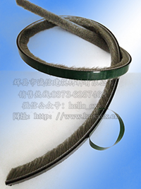 豫興牌A型高檔自粘密封毛條產(chǎn)品介紹 采用優(yōu)質(zhì)無規(guī)聚丙烯為原料制成底板,與硅化丙綸絲及聚丙烯膠片合成,毛條底部采用美國背膠,自粘式安裝方法,安裝更方便。 每平方厘米1250根的絨毛密度,保證了了優(yōu)良的密封性。硅化處理的丙綸絲與中心膠片的設(shè)計完全起到了防水密封的性能。底板護翼的獨特設(shè)計加強了支撐毛的作用,使絨毛不易側(cè)倒。 豫興牌A型高檔自粘密封毛條產(chǎn)品圖片