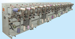 ■ 型式:單面單錠自控,4錠為一節(jié)。 ■ 錠距:300毫米 ■ 錠 數(shù):8錠/臺,12錠/臺,16錠/臺, 20錠/臺,24錠/臺 ■ 錠速:每錠一臺0.18kw電機(jī)和一臺變頻器控制, 可遞增、遞減速、無級變速。松式筒錠速1600 轉(zhuǎn)/分,緊式筒錠速1900轉(zhuǎn)/分,2600轉(zhuǎn)/分。 ■ 筒管形式:直形,錐形 ■ 筒子容量:250克,500克,750克,1000克, 2000克,可在一錠上任意調(diào)節(jié)。 ■ 筒子成形:應(yīng)用仿形板的模式,可卷繞不同角 度收邊量要求的直、錐形筒。 ■ 電機(jī)功率:0.18kw/錠 ■ 導(dǎo)絲動程:120-200毫米、可變收邊量 ■ 機(jī)臺外形尺寸:8050×990×1345毫米 (長×寬×高)/24錠