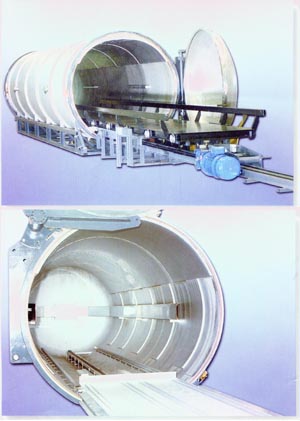我公司生產(chǎn)的真空定型快速蒸箱(以下簡稱“蒸箱”)適用于以天然纖維、化學(xué)纖維為原料的紡織行業(yè)和單位,其主要用途是將具備織造條件的連續(xù)的絲線在合并、加捻后進(jìn)行定型,即用于化纖、真絲、羊絨、紗線、窗簾、起皺布、印花布等的定型。即在一定壓力溫度下對印花布料固色.起絨,獲得均衡的光澤度,從而提高產(chǎn)品質(zhì)量。
