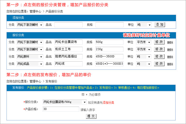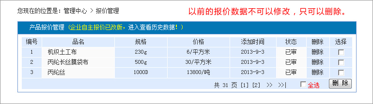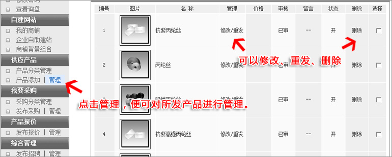 點(diǎn)擊供應(yīng)產(chǎn)品下面的:管理,便可對(duì)以往的產(chǎn)品信息進(jìn)行編輯。 3:如何在后臺(tái)發(fā)布產(chǎn)品報(bào)價(jià)?